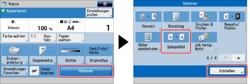 Berühren Sie nacheinander die Tasten [Optionen] → [Spiegelbild] → [Schließen].