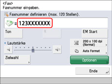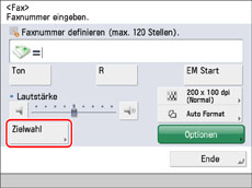 Sie können die Telefon- oder Faxnummer des Empfängers über die Auswahl einer Zielwahltaste angeben. Nähere Informationen zu Zielwahltasten finden Sie im Abschnitt "Definieren von Empfängern per Zielwahltasten".