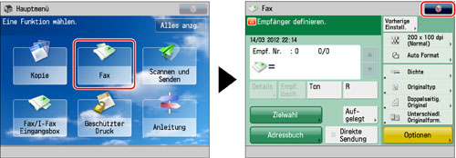 Berühren Sie nacheinander die Tasten [Fax] →