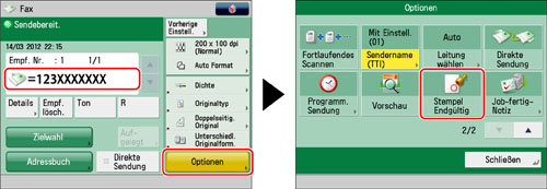 Wählen Sie den Empfänger → Berühren Sie nacheinander die Tasten [Optionen] → [Stempel Endgültig].