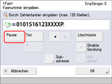 Geben Sie die internationale Faxnummer ein → Berühren Sie die Taste [Pause].