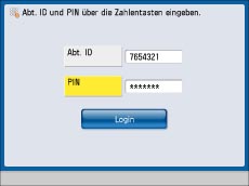 Geben Sie zum Anmelden am Remote UI oder an einer MEAP-Anwendung (einschließlich Login-Anwendungen) eine Abteilungs-ID/PIN oder die Systemmanager-ID/PIN ein.