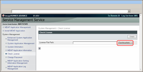 Klicken Sie auf [Check License].