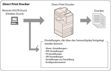 *Einstellungen, die nicht über den Druckertreiber oder ein Remote UI definiert werden können, sondern über das Display vorgenommen werden, sind mit einem Sternchen (*) gekennzeichnet.