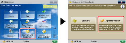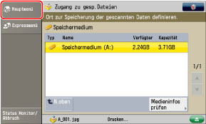 Berühren Sie nacheinander die Tasten [Scannen und Speichern] → [Speichermedium].