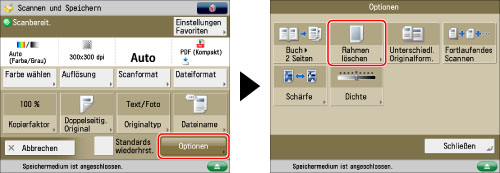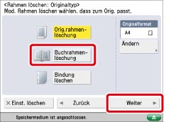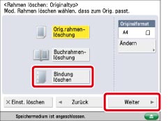 Berühren Sie nacheinander die Tasten [Orig.rahmenlöschung] → [Weiter].