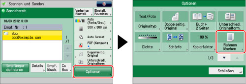 Wählen Sie den Empfänger → Berühren Sie nacheinander die Tasten [Optionen] → [Rahmen löschen].