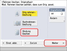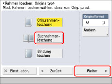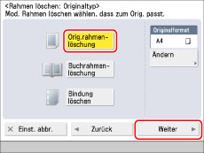 Berühren Sie nacheinander die Tasten [Orig.rahmenlöschung] → [Weiter].