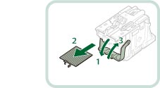 2. Ziehen Sie den Heftklammernbehälter heraus, indem Sie ihn an seiner grünen Lasche festhalten. |