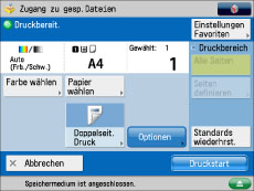 Wenn Sie den Druckvorgang abbrechen möchten, berühren Sie die Taste [Abbrechen]. (Sie können den Druckvorgang nicht mit der Taste
