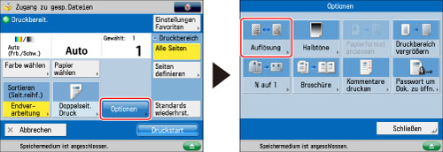 Wenn Sie [Superfein (1200dpi)] einstellen, wählen Sie Auto, A4 oder A5R als Papierformat auf dem Display Papier wählen.