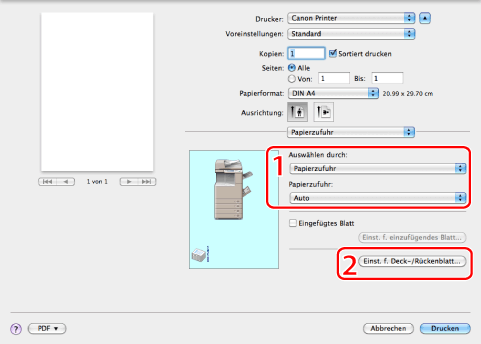 Deck- und Rückenblatt auf anderem Medium drucken als die restlichen Druckseiten.