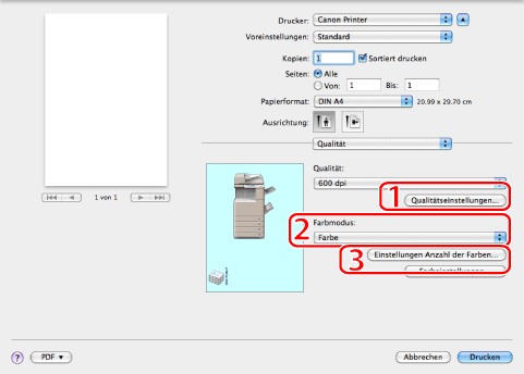 Hier können Sie Einstellungen zur Druckqualität vornehmen.