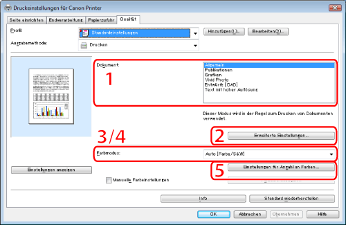 Nähere Informationen zum Anzeigen des Druckertreiber-Bildschirms finden Sie unter "Drucken" oder "Konfigurieren der Standard-Druckeinstellungen".