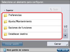 Cuando acabe de especificar las opciones, pulse [Fin sesión] en la parte inferior derecha de la pantalla para cerrar sesión.