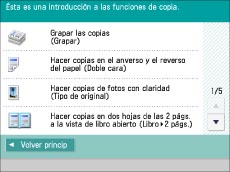 Al pulsar [Ayuda] en la pantalla Menú principal aparece la pantalla de aprendizaje de este equipo.