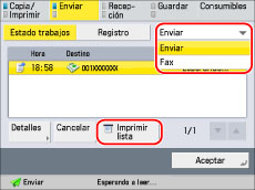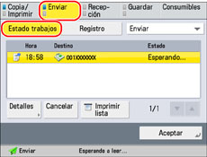Pulse [Enviar] → [Estado trabajos].