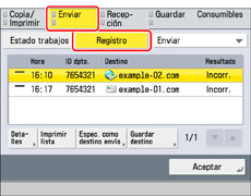 Si está desactivada la opción [Mostrar registro] en [Opciones de gestión] (Configuración), no aparece [Informe de gestión de comunicaciones].