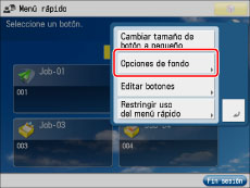 Seleccione el botón para el que desea especificar el fondo → seleccione las opciones de fondo → pulse [Aceptar].