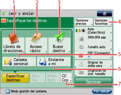 Puede seleccionar y enviar a hasta 256 destinos a la vez. Sin embargo, si como destino se especifica una dirección de grupo, cada dirección guardada en ese grupo se considerará un solo destino.