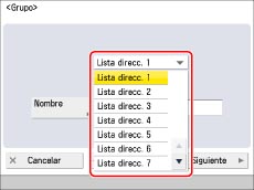 Si desea guardar una dirección de grupo, puede seleccionar únicamente destinos guardados en la misma lista de direcciones.