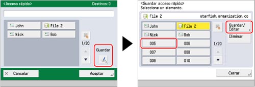 Para conocer instrucciones acerca de cómo guardar/editar un número de fax, consulte "Guardar nuevas direcciones".