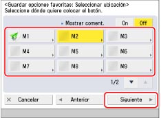 Seleccione el botón en el que desea guardar las opciones → pulse [Siguiente].