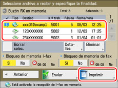 Los archivos guardados en el buzón de recepción en memoria se eliminan automáticamente después de imprimirlos.