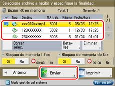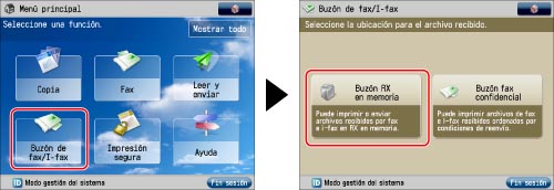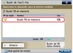 Pulse [Buzón de fax/I-fax] → [Buzón RX en memoria].