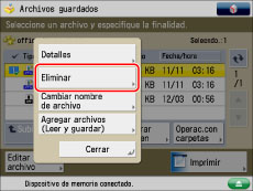 Es necesario activar <Usar la función Lectura/Impresión> en [Usar la función Impresión] para imprimir un archivo en el dispositivo de memoria. (Consulte "Opciones de dispositivos de memoria".)