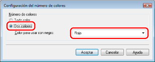 Puede imprimir utilizando el negro y otro color que especifique. Esta función solo se encuentra disponible con el controlador de impresora UFR II.