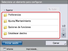 → [Preferencias] → [Red] → [Opciones de TCP/IP] → [Opciones de SSL] → seleccione [Default Key] (el par de claves y certificado de servidor preinstalados) en [Clave y certificado] → pulse [Convertir en prefijada].|