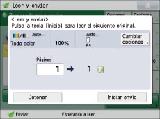 No es posible cambiar las opciones, como el tamaño de documento o la escala de lectura, mientras el equipo está leyendo.