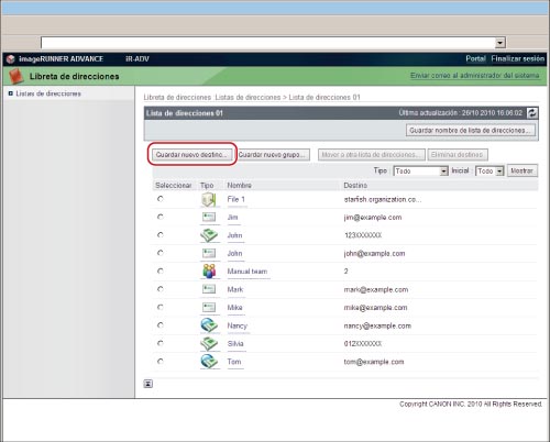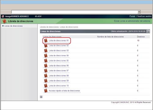 Haga clic en [Libreta de direcciones] → [Lista de direcciones 01] en la pantalla de lista de direcciones.