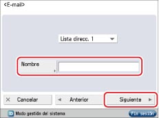 Puede registrar una dirección de e-mail desde la pantalla táctil.