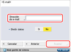 Introduzca una dirección de e-mail en [Dirección de e-mail] → pulse [Aceptar].