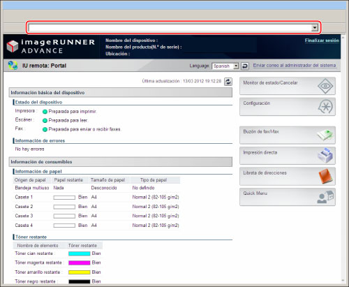 Las pantallas pueden diferir dependiendo del modelo de equipo y de los productos opcionales instalados.