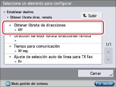 → [Establecer destino] → [Obtener libreta direc. remota] → [Obtener libreta de direcciones].