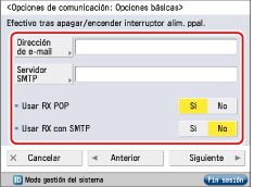 → [Opciones de funciones] → [Enviar] → [Opciones de e-mail/I-fax] → [Opciones de comunicación].