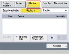 Pulse [Monitor estado/Cancel.] → [Recepción] → [Comprobar RX de I-fax] → compruebe que el trabajo se recibió correctamente.