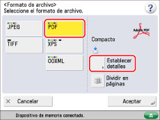 Seleccione [PDF] → pulse [Establecer detalles].
