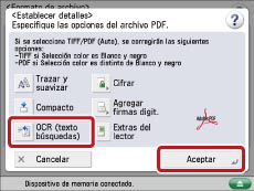 Pulse [OCR (texto búsquedas)] → [Aceptar].
