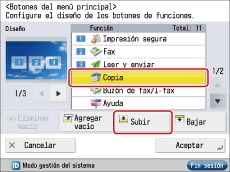 Seleccione [Copia] → pulse [Subir] y muévala a la posición <1>.