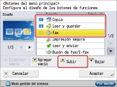 Repita el paso 4 para mover [Leer y guardar] a la posición <2> y [Fax] a la posición <3>.