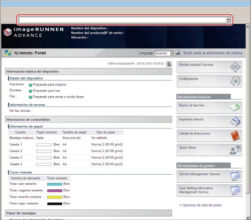 Inicie el navegador web → introduzca la dirección IP del equipo en [Dirección].