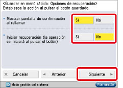 Pulse [Menú rápido] en el equipo en el que ha importado las opciones → pulse el botón que contiene las opciones guardadas.