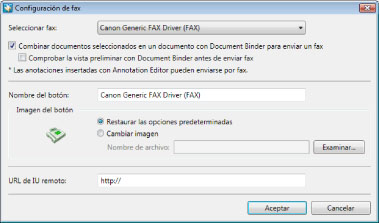 Puede enviar por fax varios documentos como un único documento de cuaderno. En este caso, aparece el cuadro de diálogo [Configuración del orden de varios documentos]. Para obtener más información, consulte "Referencia".