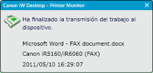 Aparece durante el período transcurrido desde el comienzo de la puesta en cola realizada por el gestor de colas de Windows hasta que concluye un trabajo de envío de fax a imageRUNNER ADVANCE.