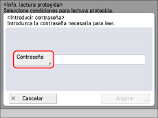 Seleccione la condición de la información de lectura protegida. Como ejemplo se selecciona [Autent. con contraseña].