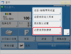 可以在[选项]中为常用的功能创建快捷键。也可以为[常用设置]创建快捷键。有关常用设置的信息,请参阅